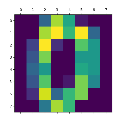 手写数字数据集包含1797个0-9的手写数字数据,每个数据由8 * 8 大小的矩阵构成,矩阵中值的范围是0-16,代表颜色的深度。