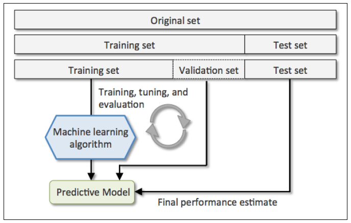 在分类问题中,我们通常通过对训练集进行triain_test_split,划分出train 和test两部分,其中train用来训练模型,test用来评估模型,模型通过fit方法从train数据集中学习,然后调用score方法在test集上进行评估,打分;从分数上我们知道模型当前的训练水平如何。