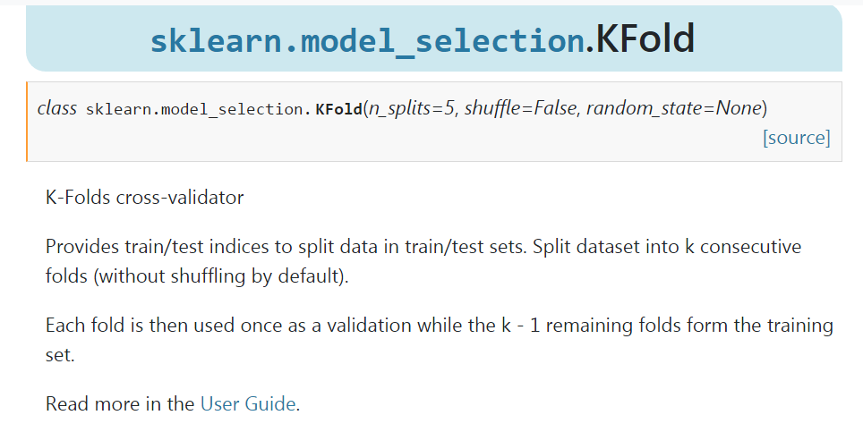 通常情况下,可以设置cv参数来控制几折,但是我们希望对其划分等加以控制,所以出现了KFold,KFold控制划分折,可以控制划分折的数目,是否打乱顺序等,可以赋值给cv,用来控制划分。