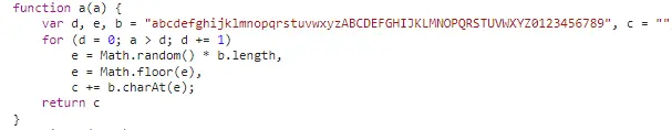 通过读a函数,我们发现a函数是生成一个a(传进来的参数)位的字符串,也就是说d中的i将会是一个随机数(阿这也太狗了)