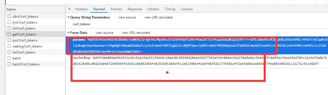 我们查看请求方式是post,我们用对应的post方式并传递对应的参数,模拟加密过程,最终可以相应;