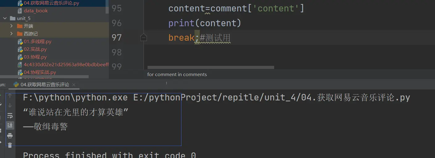 我们可以让页面继续运行,然后得到i和对应的h.encSecKey这样我们就可以在python中将这两个变量写死。