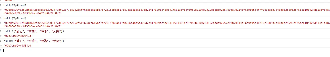 第二个参数bsR1x([“流泪”, “强”]):第一次见是不是觉得很奇怪,我们放到浏览器中运行一下: