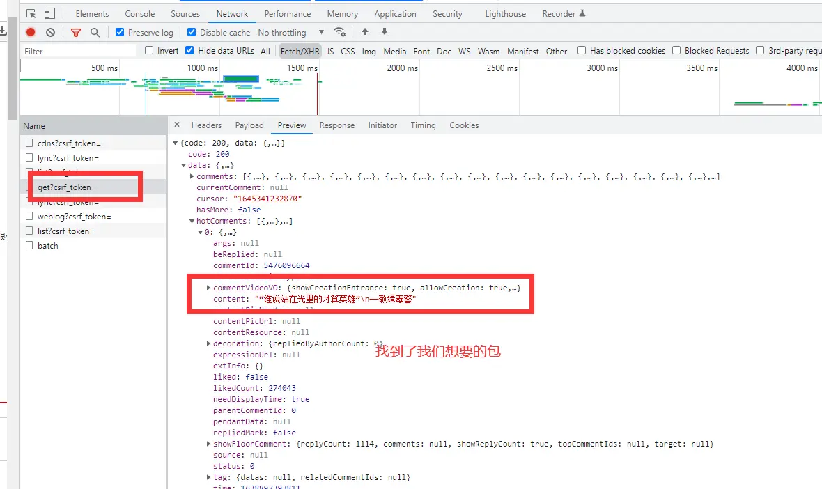 既然源代码里找不到,只能使用网页抓包工具看看在哪里包里面了