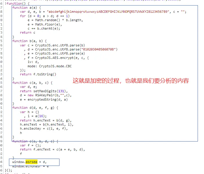 第二个参数和b函数有关,看到b函数中有一个AES的字样,就需要我们自行查询百度了-----大概了解了是一个加密的过程,其中的参数e就是我们的data数据,c传入的是一个密钥key,iv是位偏移,mode是加密模式,这里用的是CBC加密,具体的过程我们不必深究,我们需要做的是在python中模拟这里加密的过程,这样的话我们就可以通过修改data中的rid字样来获得不同歌曲的评论。