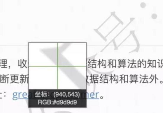 从图中可以发现,水印的 RGB 是 #d9d9d9,这里是用十六进制表示的,其实就是(217, 217, 217)。