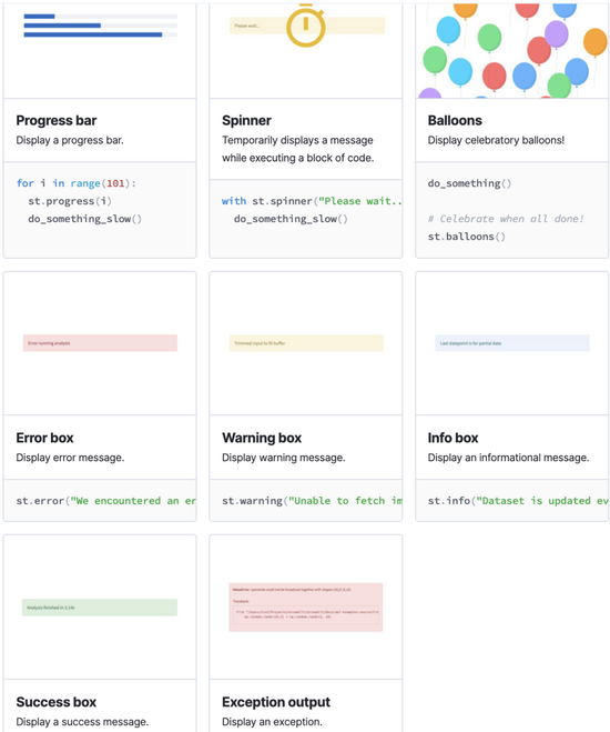 - stop:可以让 Streamlit 应用停止而不向下执行,如:验证码通过后,再向下运行展示后续内容。