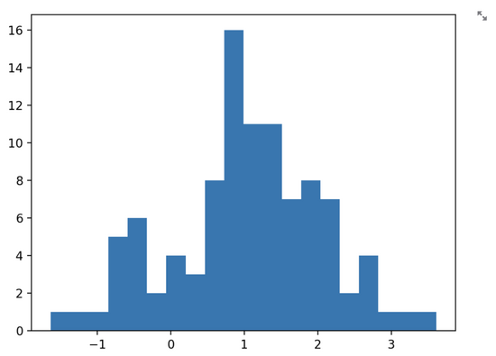 import matplotlib.pyplot as plt arr = np.random.normal(1, 1, size=100) fig, ax = plt.subplots() ax.hist(arr, bins=20) st.pyplot(fig)