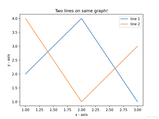 1)在同一张图上绘制两条线。通过给它们一个名称(label)来区分它们,该名称作为 .plot() 函数的参数传递。