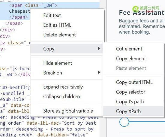目前为止,我们打开了一个浏览器窗口并获得了网址。接下来我会使用XPath或者CSS选择器来抓取价格等其他信息。曾经我也只用XPath,当时我觉得没必要用CSS,但是现在看来最好结合着用。你可以直接用浏览器复制网页XPath来用,你也会发现由XPath虽可以定位网页元素但是可读性很差,所以我渐渐意识到只用XPath很难获得你想要的页面元素。有时候,指向得越细就越不好用。