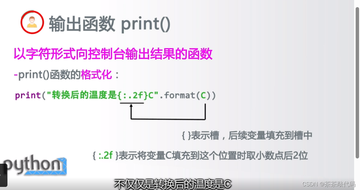 {:.2f} 是print的格式语句 在引号外.format(C)