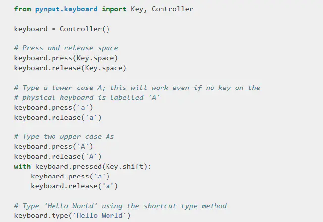 像这样使用pynput.keyboard.Controller: