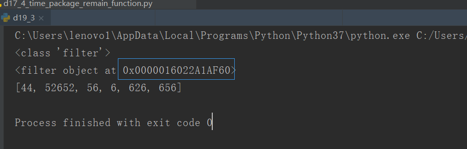 filter函数返回的是一个filter类,打印出来也不再是一个列表,需要我们转换成列表,其中0x000…代表的是一个运行线程。