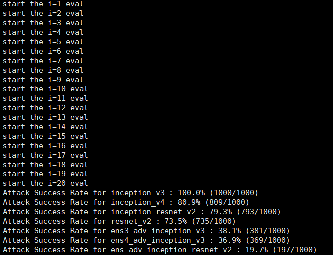 总图像1000张,每次8张,一共攻击125次,最后得到的平均L2扰动距离为19.25,表明攻击在隐蔽性和有效性之间取得了不错的平衡。