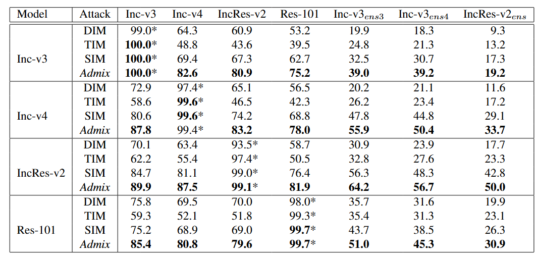 Wang, **aosen, et al. "Admix: Enhancing the transferability of adversarial attacks." Proceedings of the IEEE/CVF international conference on computer vision. 2021.