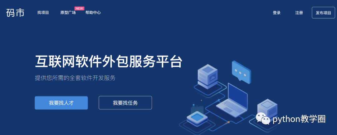 Coding 旗下的互联网软件外包服务平台,平台以外包为主。码市的单量还可以,单子价格也有很多比较合适的。码市的平台费是10%,业界标准费率。