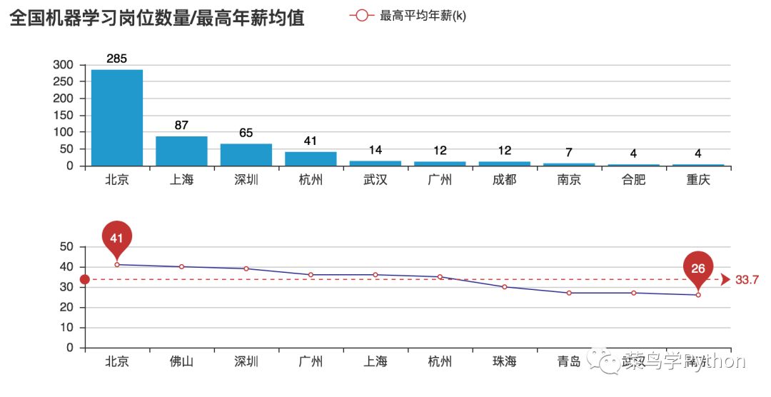 如果真的想进入Python领域,我们来从数据的角度看看,到底选择那个方向赢面会大一点,毕竟转行最怕走弯路。我从岗位的数量,城市和最高年薪(均值)几个维度简单分析。
