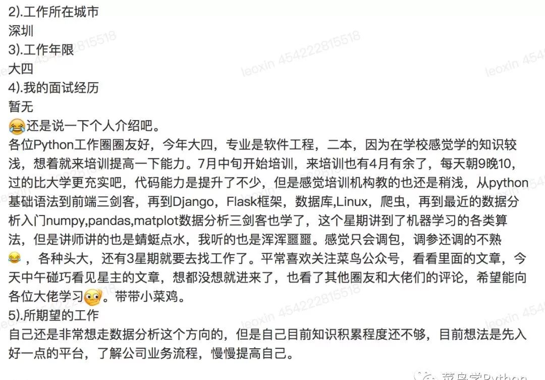 Python现在非常火,语法简单而且功能强大,很多同学都想学Python!最近陆陆续续有很多小伙伴问我,学Python到底应该做什么,从事哪种岗位。下面是我们工作圈里面一些同学的苦恼: