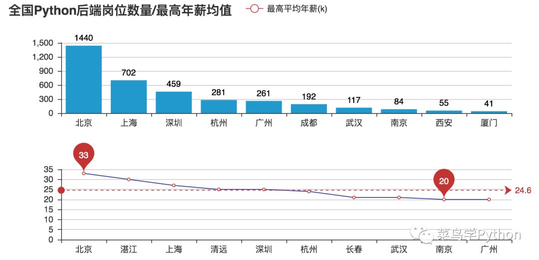 后端开发岗位是大户,是目前所有Python岗位里面需求量最大近一半,需求数量是爬虫工程师的10倍
