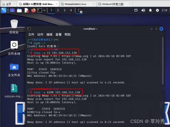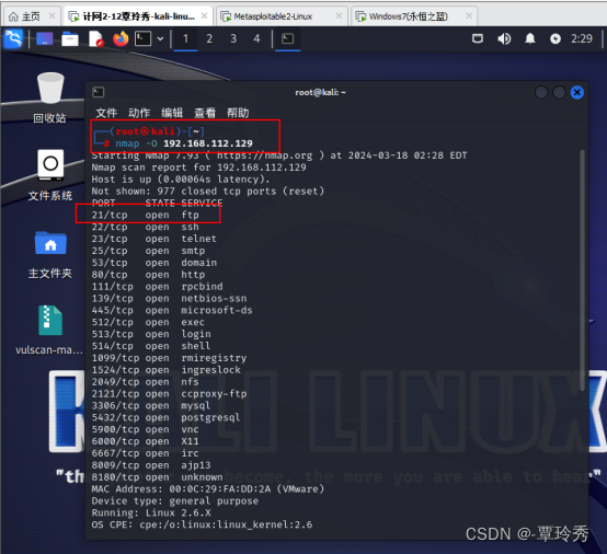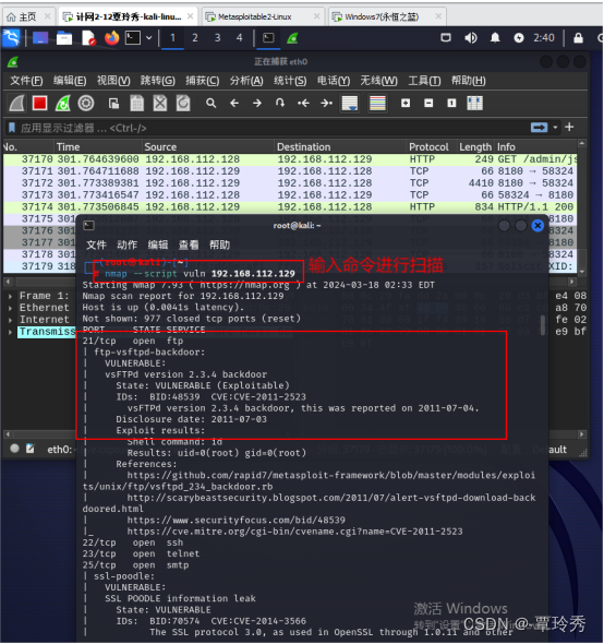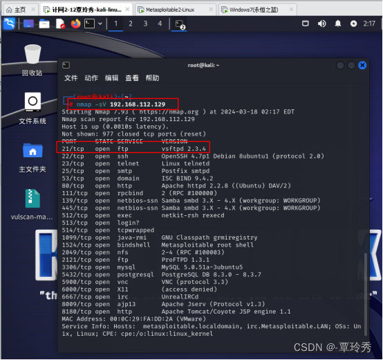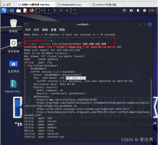 2.1 针对vsftpd-2.3.4漏洞的扫描。