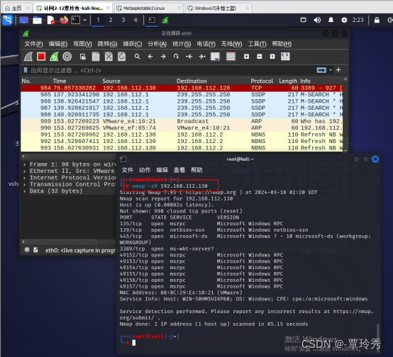 (2)端口扫描:扫描目标系统的开放端口,确定可以与系统通信的服务。