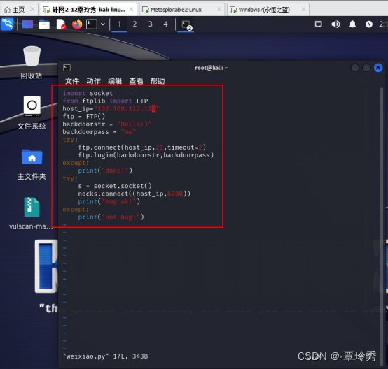 1.2 检测目标系统上的vsftpd-2.3.4是否存在笑脸漏洞。