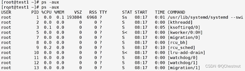 查看进程信息:静态查看、动态查看 ps——静态查看信息进程信息