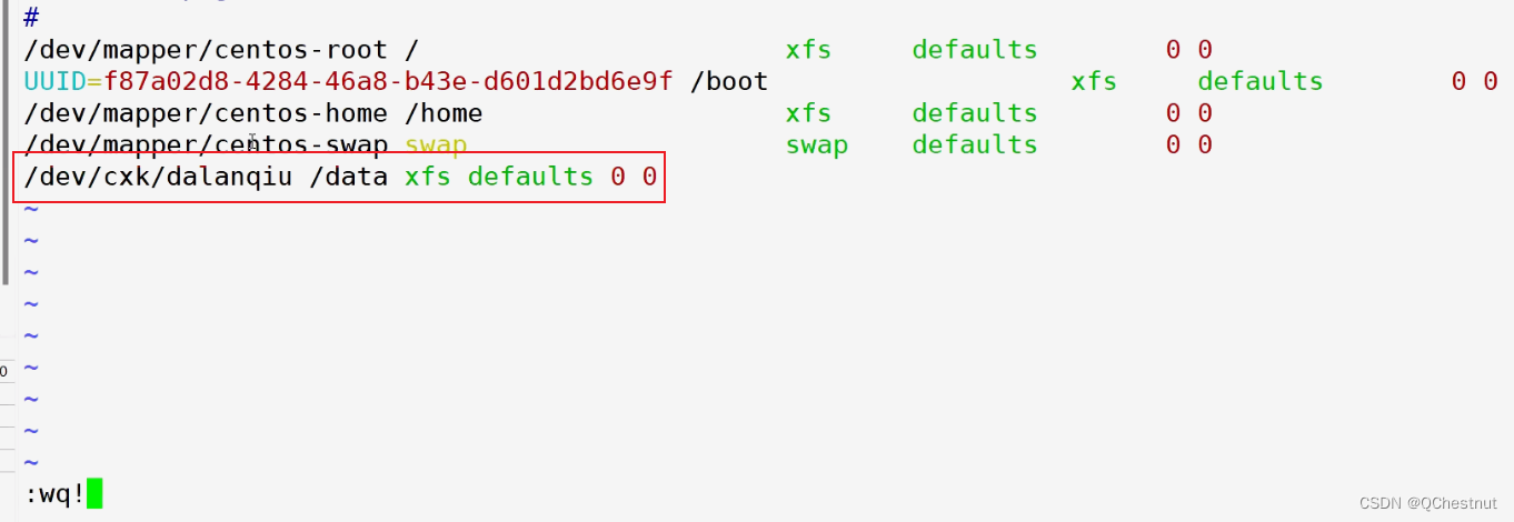 永久挂载vim /etc/fstab