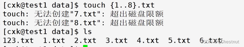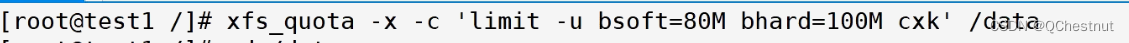 xfs_quota -x -c 'limit -u isoft=4 ihard=6 cxk' /data