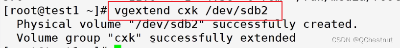 将sdb2加入到卷组中
