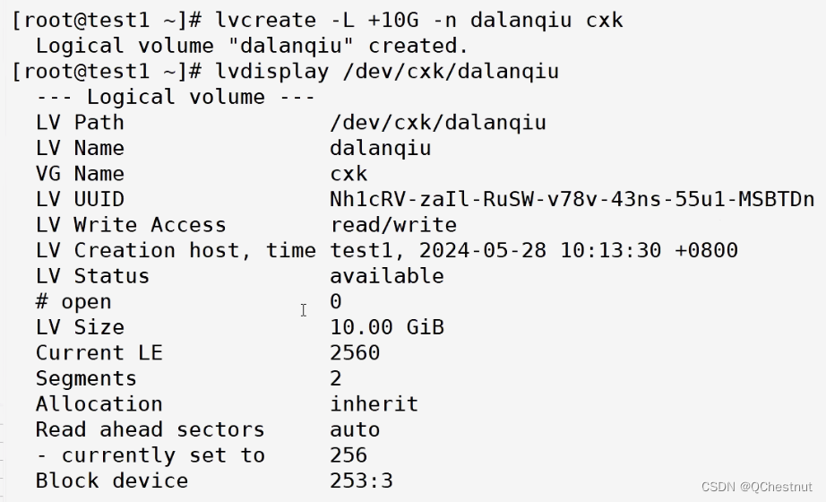 (1)lvcreate创建逻辑卷,lvdisplay查看