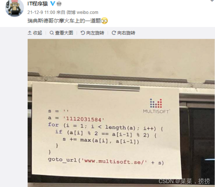 上图是新浪微博上的一则趣闻,是瑞典斯德哥尔摩火车上的一道题,看上去是段伪代码: