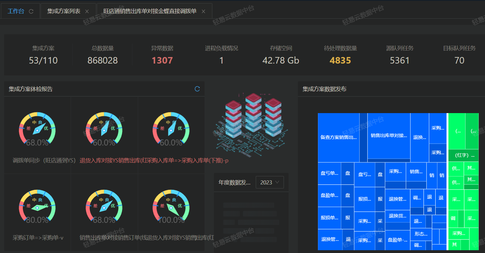 通过无代码的数据集成与数据建模的智能数据管道技术,帮助企业将所有应用程序、数据库、事件和文件等数据信息提取到数据仓库中,并快速将分散的数据转化为数据集、API、自动化流程等开箱即用的数据服务。配置接口的模式对接吉客云和金蝶云星空,使得单据无缝互通。打造企业内部数据一体化,让企业日常运营管理实现敏捷数据化运营。实现供应链业务信息流的互通,同时支持供应链数据分析流程自动化,结果推送,推进相关供应链问题优化。及时打通供应链孤岛,实现数据驱动供应链协同,进一步提升企业竞争力。