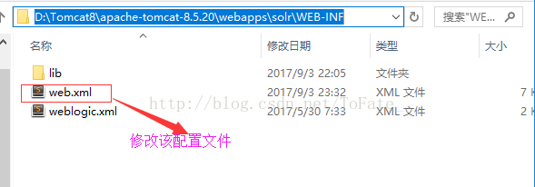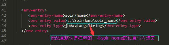 - 修改复制到tomcat中的solr项目中的WEB-INF目录下的web.xml配置文件,如下图:
