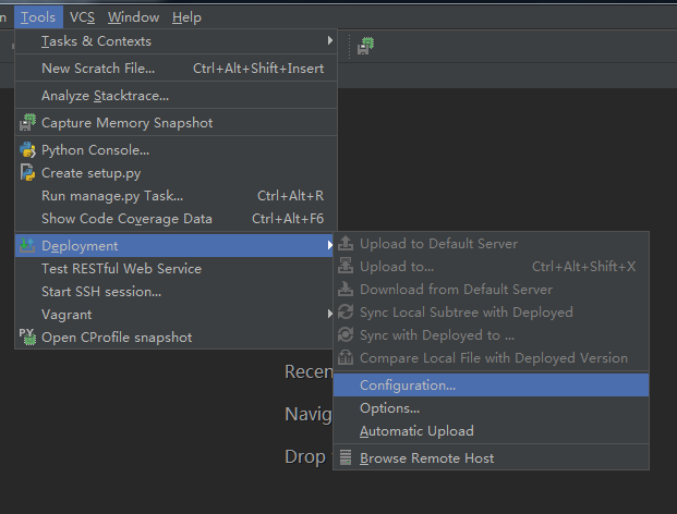 (1)Tools-->>Deployment-->>Configuration