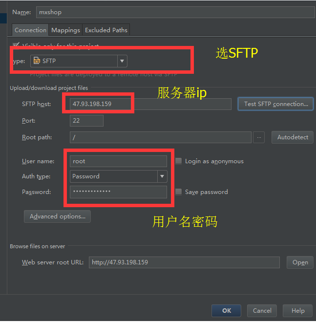 设置好后点“Test SFTP connection”,连接到数据库,然后把项目代码上次到远程数据库