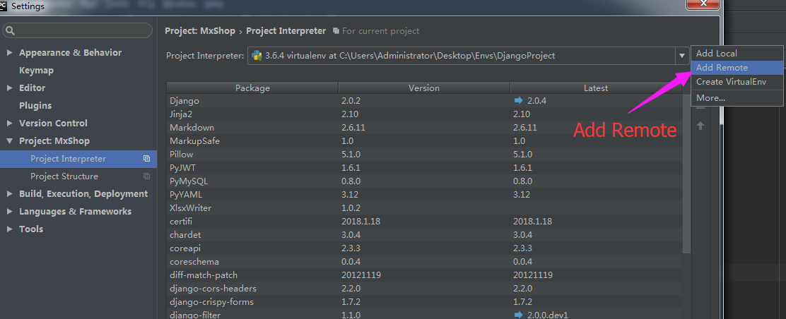 mkvirtualenv MxShop --python=python3.6