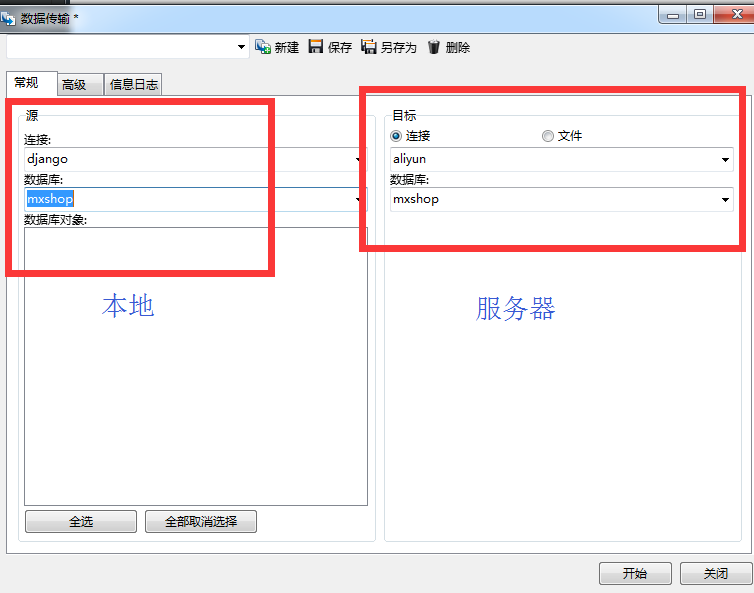 数据库建好后开始把本地数据库中的数据传到远程服务器