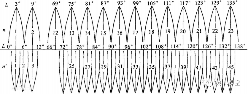 UTM投影分带方法与高斯-克吕格投影相似,是自西经180°起每隔经差6°自西向东分带,将地球划分为60个投影带。
