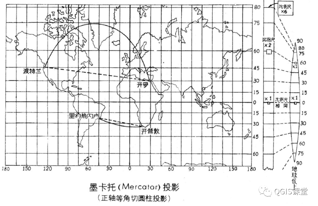 墨卡托投影是最常用的圆柱投影之一,又叫正轴等角切圆柱投影,是16世纪荷兰地图学家墨卡托(Mercator)所设计。