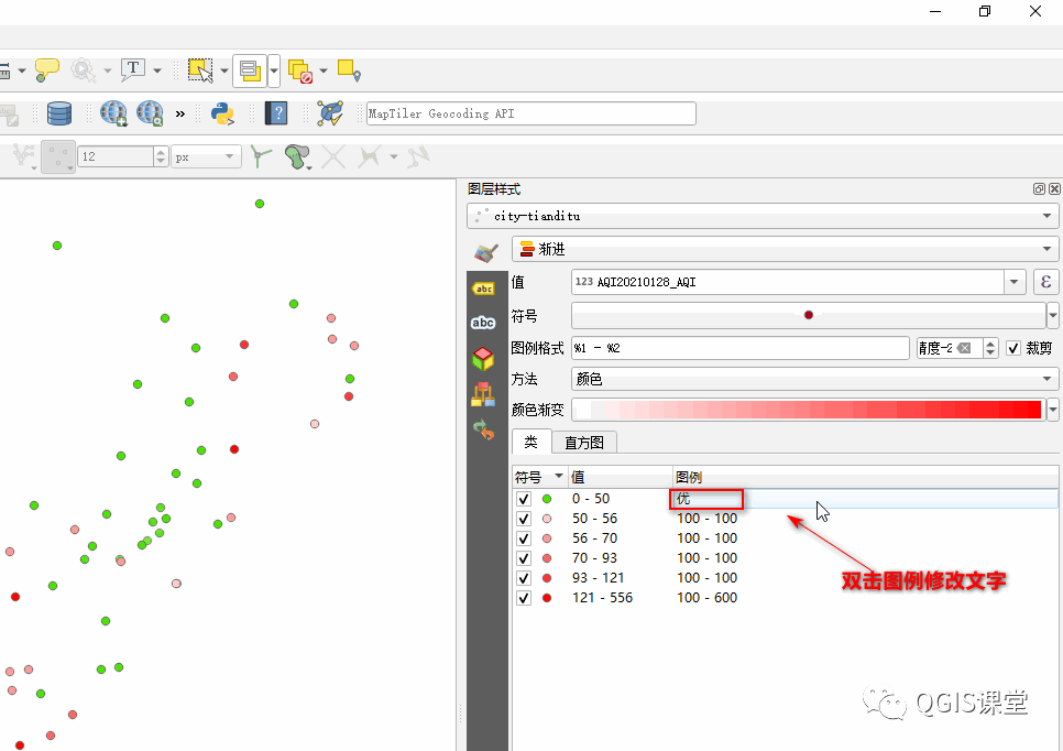 按同样步骤完成其他AQI级别的符号、上下限、图例的修改,完成后效果如下图: