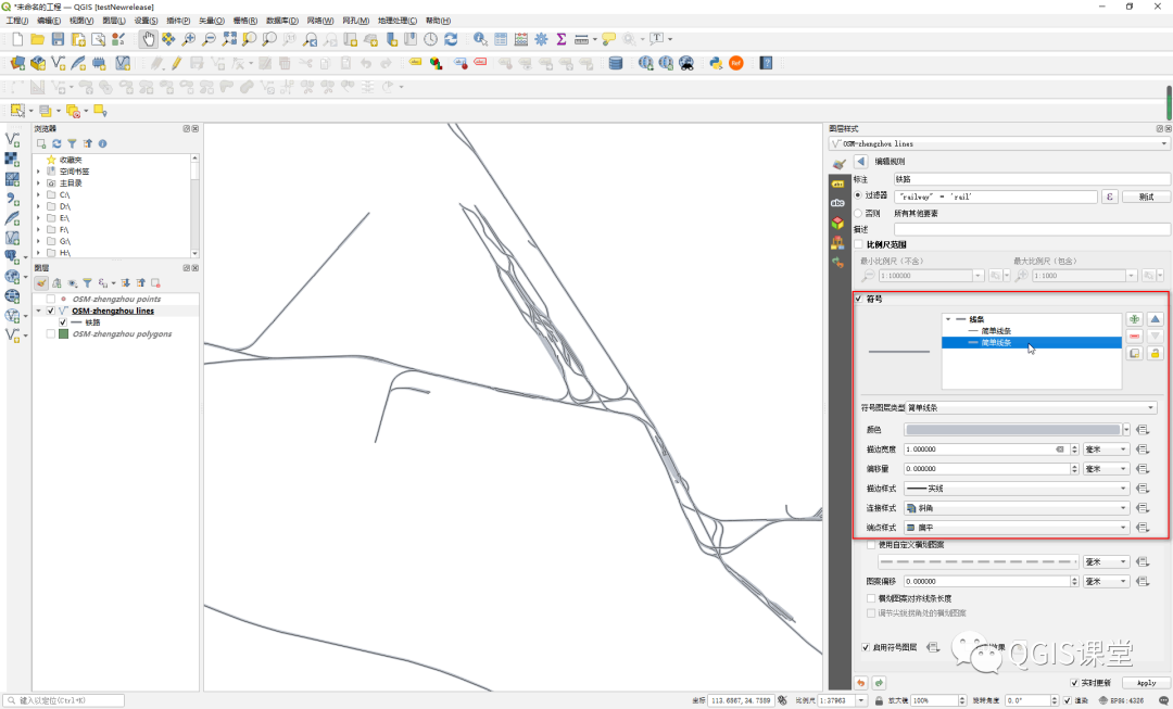 本文以OpenStreetMap的城市地图为例,分享QGIS提取OpenStreetMap铁路数据和自定义制作高德地图铁路线状符号的过程。