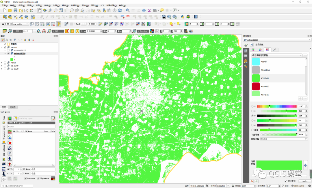 本文继续介绍使用QGIS基于多期哨兵2影像遥感指数阈值法提取冬小麦分布,本文为教程的第三部分:NDVI阈值选择和冬小麦种植面积提取。所使用的示范数据下载地址为: