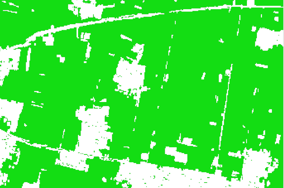 根据之前所述,2019年10月裸地和2020年4月植被求交集运算(两个图层相乘),即可得到冬小麦的种植区域。