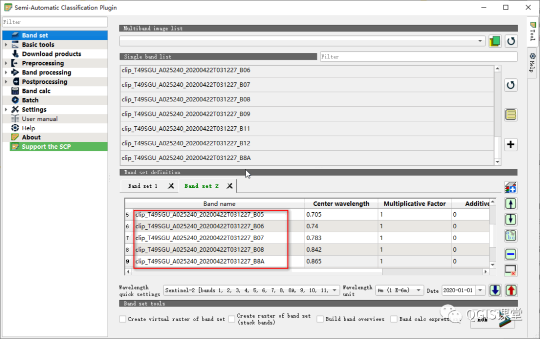 ,点击2020年4月影像所在的Bandset,如“Band set 2”,激活Band set。