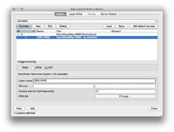 2)URL 填写 field http://ows.terrestris.de/osm/service。