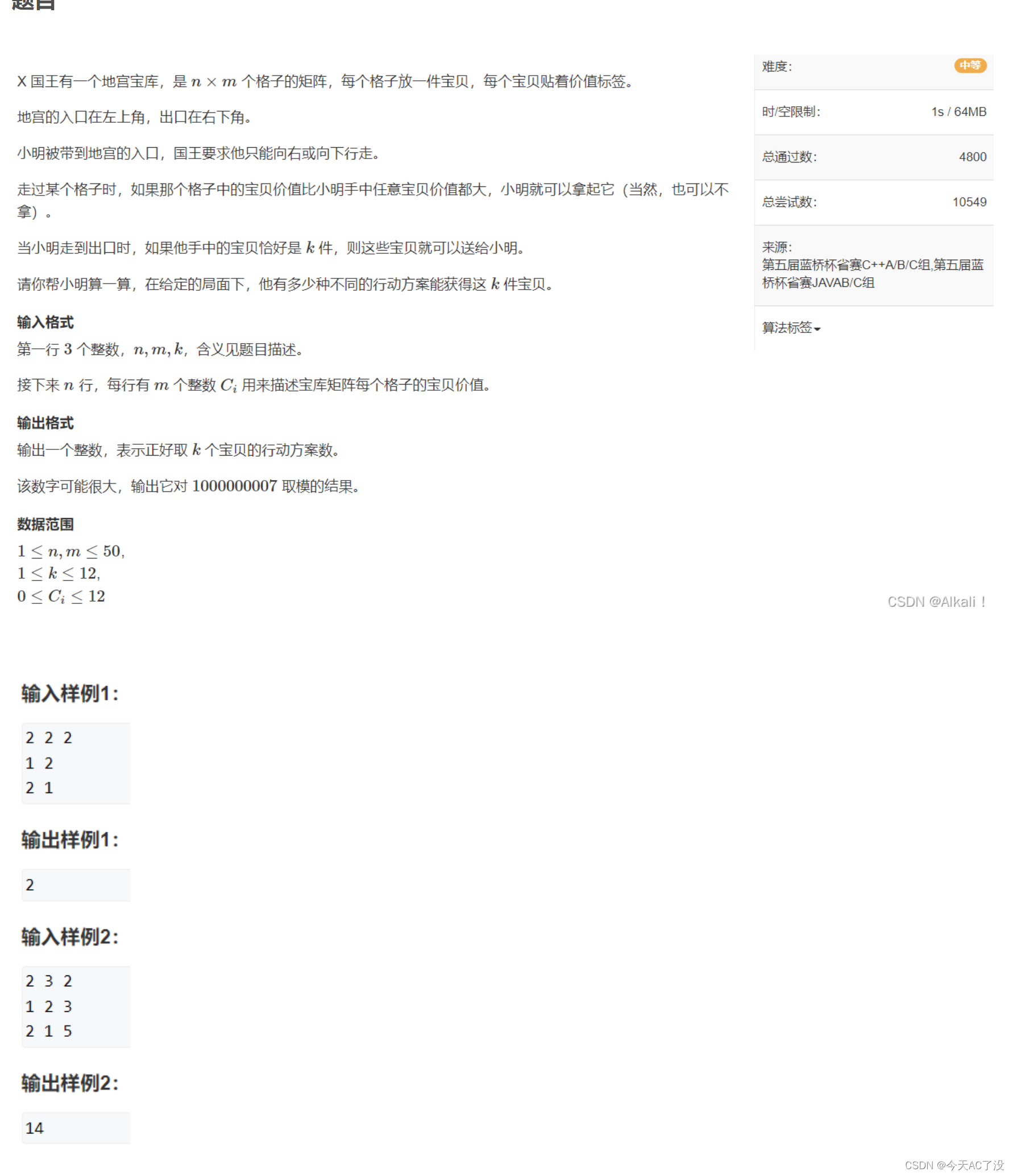 致谢:AcWing 1212. 地宫取宝(普通 dp,重点理解)
