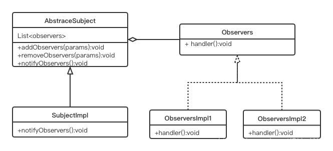 添加使用了spring容器:这种在定义的观察者接口时要定义一个方法来获取他要订阅的事件,按照事件spring自动添加到主题实现类。