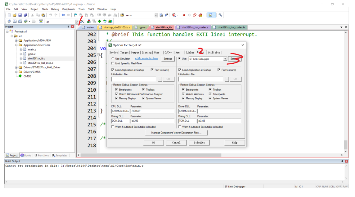设置指定GPIO高低电平 由于下图文件使用STM32Cube建立无需使能时钟,引脚初始化因此可使用下述代码,如使用上图方法请参考3.4完整代码展示