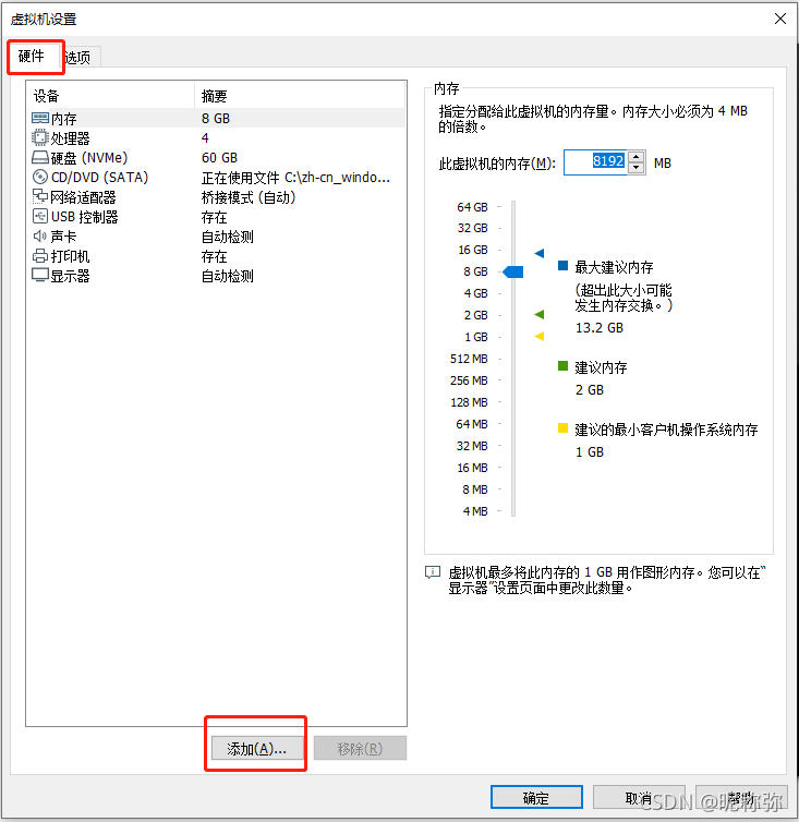 20、点击硬件,然后点击添加。